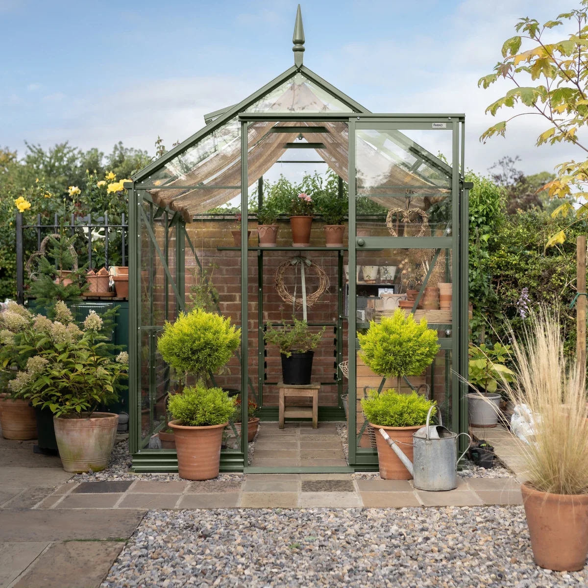 It’s better looking: The Rhino Premium comes in a range of timeless colours that we’ve chosen to complement the garden perfectly as well as a plain aluminium finish. With a range of bespoke accessories available, such as blinds, staging and seedracks you can give your Rhino Premium a look you’ll love.